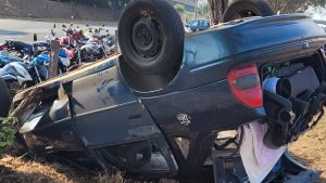 Na madrugada desta terça-feira (16), um grave acidente deixou cinco pessoas feridas após o capotamento de um Chevrolet Corsa na