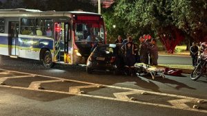 Um acidente envolvendo um ônibus do transporte coletivo e um Ford Ka foi registrado na noite desta quinta-feira (25), na