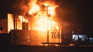 Um incêndio de grandes proporções foi registrado na noite desta terça-feira (30) em uma empresa especializada em fibra, localizada na