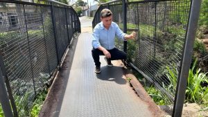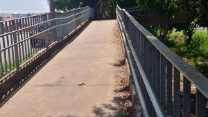 A passarela localizada no km 135 da Rodovia Luiz de Queiroz (SP-304), que liga os bairros São Francisco I e
