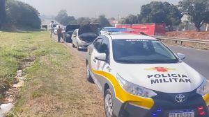 Quatro veículos se envolveram em um engavetamento na manhã desta quinta-feira (21) na Rodovia Luiz de Queiroz (SP-304), em Americana,
